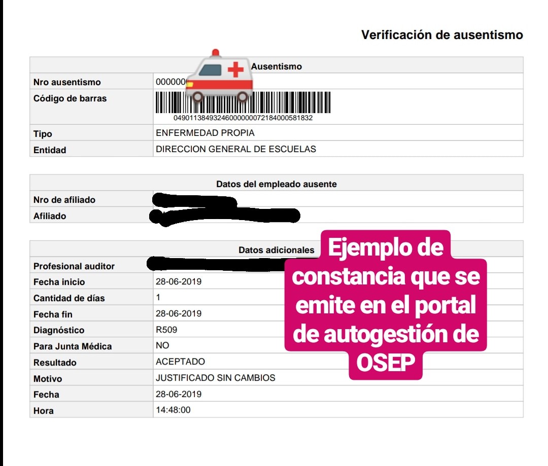 Entre las novedades figura que el docente o celador no debe entregar más el certificado médico en la escuela, ahora solo de presenta la constancia emitida por el portal de OSEP en donde ya figuran todos los datos auditados por control de ausentismo.