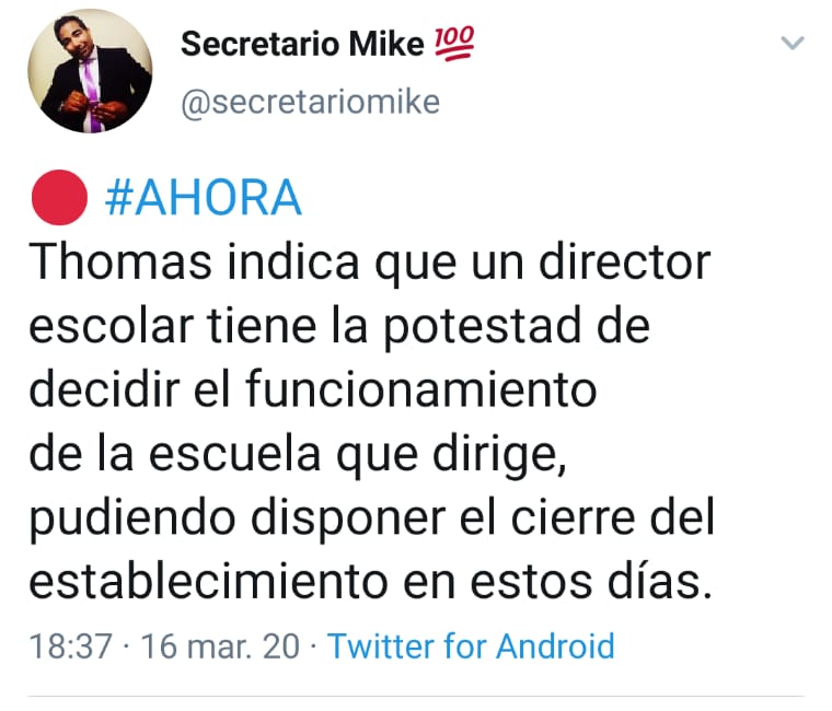 En consonancia con la Resolución 108 del Ministerio de Educación, la DGE comunicó en conferencia de prensa en la tarde del lunes que Mendoza también adhiere a la medida de suspender las clases de manera presencial hasta el 31 de marzo en todos los niveles y modalidades, con la particularidad de que los directores puedan disponer si el personal debe asistir o no al establecimiento educativo.