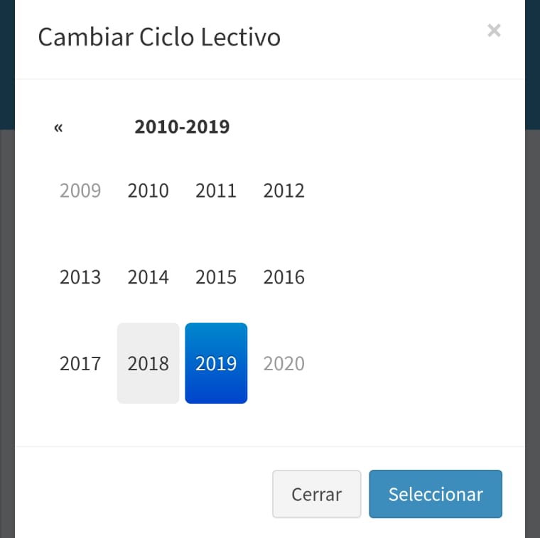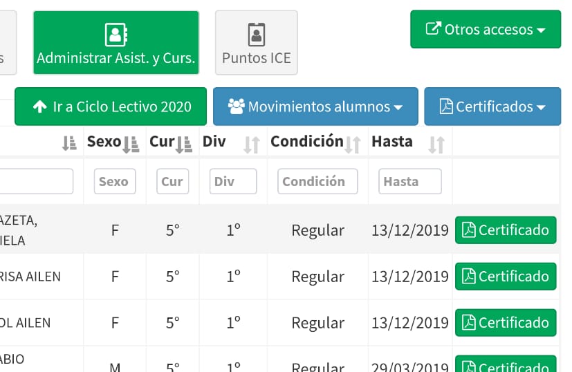 La Escuela debe ingresar a –> Cursos y Divisiones –> seleccionar el curso deseado –> Alumnos –> y deberán cambiar el ciclo letivo como se indica enla siguiente imagen: