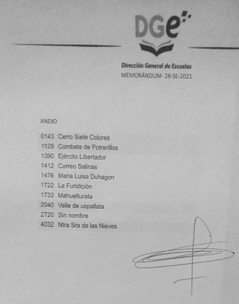 Listado de escuelas que asisten según memo 28 entre las 14h y las 19hs