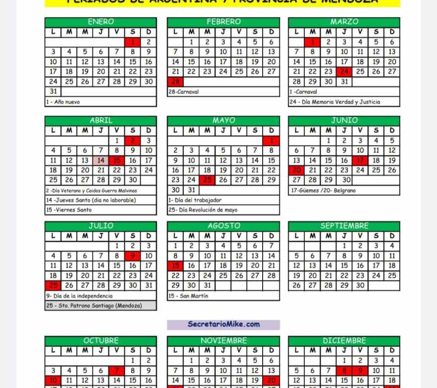 El Gobierno Nacional ya publicó el cronograma de feriados para el 2022 e incluso el Consejo Federal de Educación ya informó la fecha de inicio de clases para el 2022, aunque en Mendoza el Gobierno Escolar había anunciado que en noviembre daría a conocer el calendario propio.