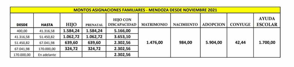 Por medio de un Decreto a partir de los haberes de noviembre de 2021, se actualizan los montos de asignaciones familiares para los estatales de la Provincia de Mendoza.