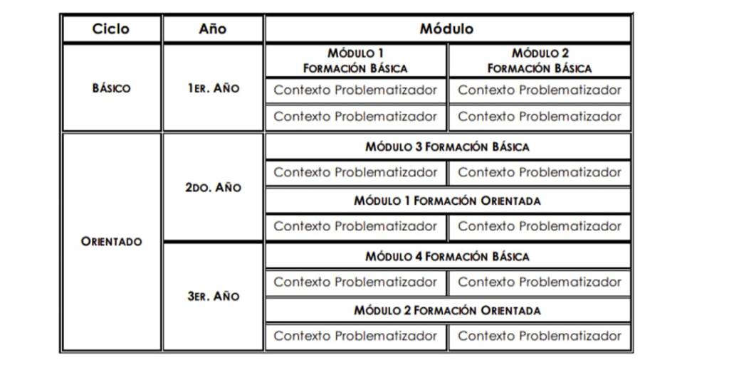 Los Módulos acreditables son 6 (seis) y se distribuyen en los Ciclos Básico (4 módulos) y Orientado (2 módulos) de la siguiente manera: