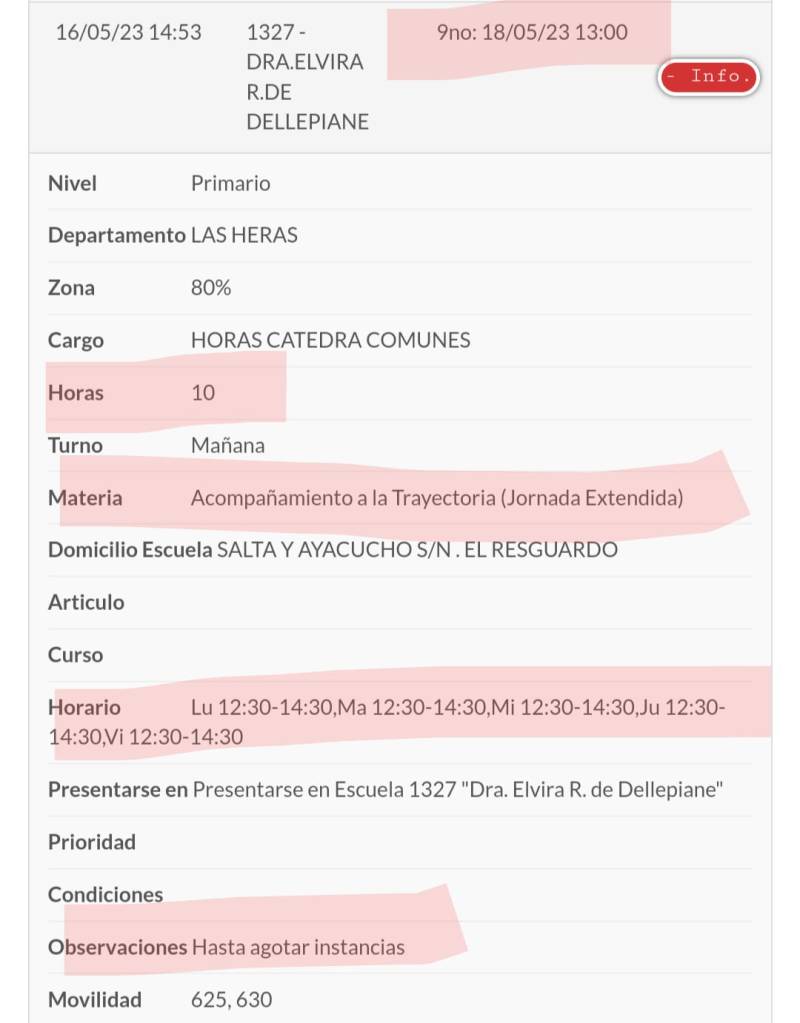 En las últimas semanas transcendió además que en los avisos educacionales, hay escuelas que ya han superado más de 20 llamados y sin cubrir las vacantes a pesar de tratarse de escuelas con grades porcentajes adicionales por ser de zonas urbano marginales, rurales y de suplencias de larga duración. Al respecto según publica un diario local, el Gobierno Escolar menciona que una de las razones por la dificultad de cubrir suplencias es que ahora los docentes disponen de más horas para trabajar gracias a la jornada extendida en primaria y las horas de recuperación de saberes en secundaria, ambas en contra turno y esto les estaría impidiendo tomar un segundo cargo.