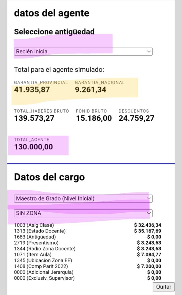 Buen día, en el simulador me figura $130.000 en mayo docente de nivel inicial con 9años de antigüedad y 30%de zona.