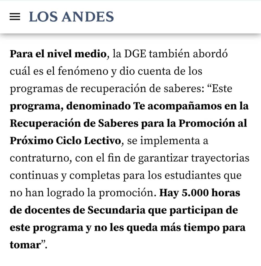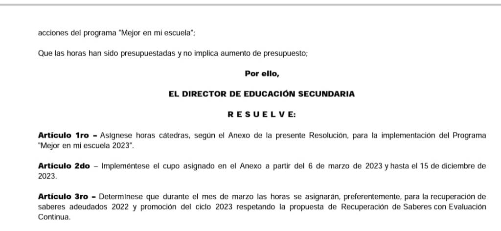 Segundo, si vamos por el lado de la disponibilidad horaria, la jornada extendida en primaria son 10 horas que se le agregan al cargo de maestro de grado ( cumpliendo 2 hs por día) y en secundaria un profesor puede llegar a tomar un paquete de horas que le ofrezca la dirección pero apenas serán unas 3 o 4 horas cátedra por semana, ya que hay un cupo limitado por escuela que debe distribuirse para varias materias (por cierto el programa Mejor en mi Escuela, no es nuevo se realiza desde hace muchos años).