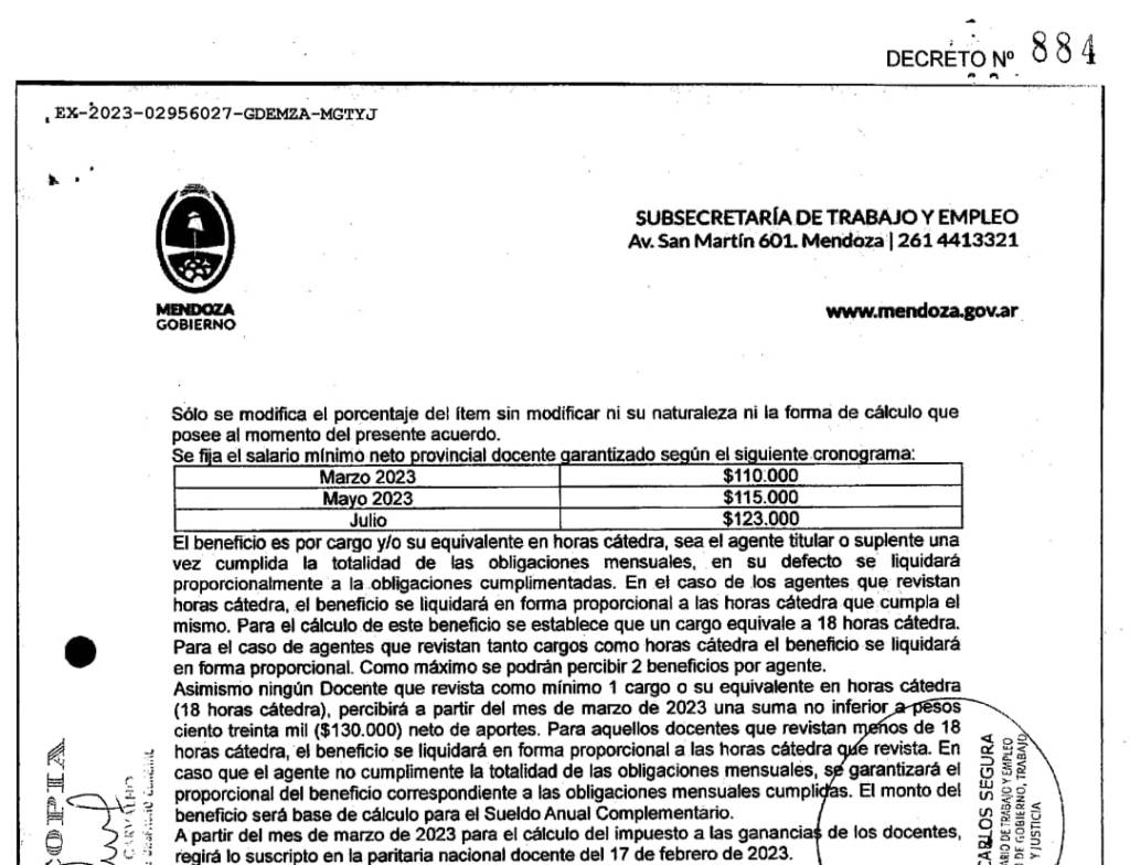 Hasta los haberes de abril el piso mínimo garantizado provincial fue de $110 mil pesos y a partir de mayo pasa a ser de $115 mil pesos en Mendoza.