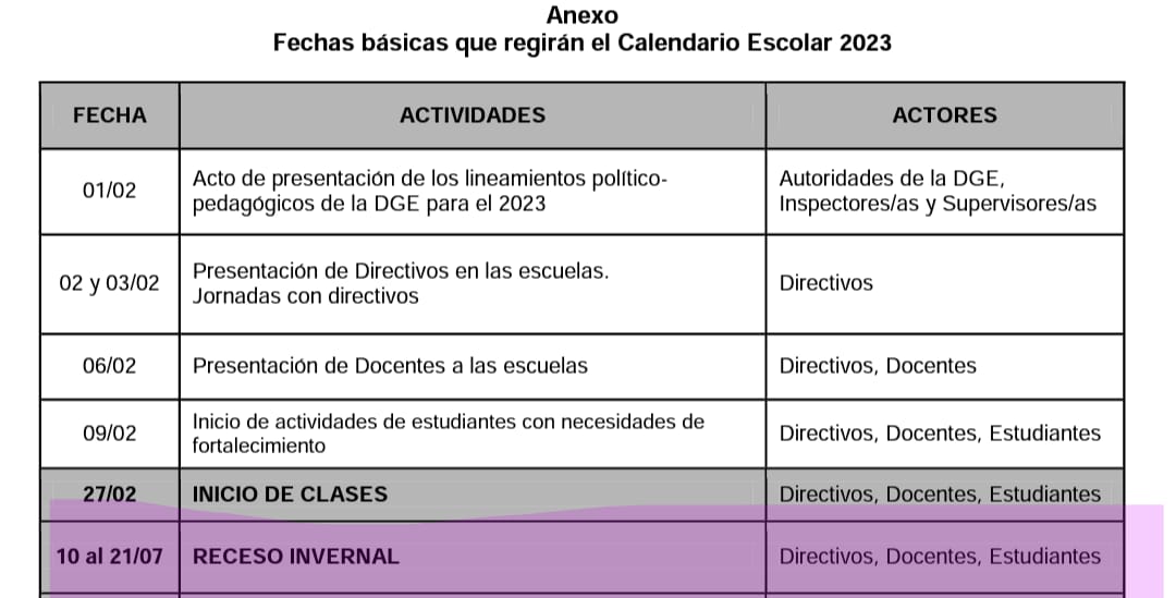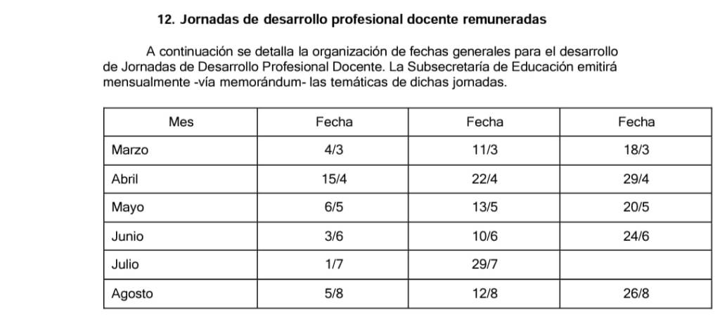 Acorde al cronograma de la Resolución 25/23 de la Subsecretaría de Educación, las jornadas docentes remuneradas de los días sábados se interrumpen durante el receso y solo quedan previstas las del sábado 1 de julio y luego la del sábado 29 de julio.