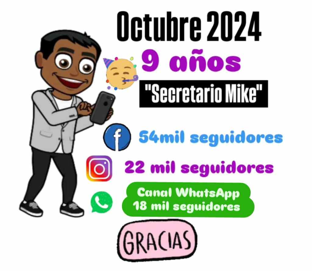 «Secretario Mike cumple 9 años en las redes y en la web. Quienes me siguen desde los inicios o han visto mi paso por las escuelas saben que soy real 😆 y que me esfuerzo en ser un buen profesional. Nadie me obliga a tener la web o las redes de Mike, ni me pagan por ello, todo lo hago por iniciativa personal sin auspiciantes y me sorprende mirar hacia atrás y ver qué he sobrevivido 9 años. Entiendo que así como algunos docentes siguen dedicando tiempo fuera del aula en ayudar a sus estudiantes, preparar clases y colaborar con tiempo y esfuerzo no remunerado, de igual forma cuando a uno le gusta lo que hace, le dedica tiempo extra, quizá por ello no me molesta, ( mientras mis circunstancias lo permitan) a seguir compartiendo información de utilidad para la comunidad de docente y bueno también a ponerle un poco de humor a la realidad diaria en las redes 😅…. Muchas gracias a los que siguen desde los inicios, a los que se han ido agregando y a los que no le agrada lo que hago, pero igual me siguen 😆🫂»