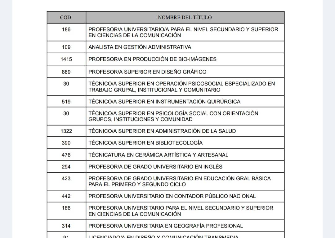 Ahora bien en vista de que constantemente se actualizan los títulos docentes, profesionales y habilitantes, es que la DGE debe incorporar las actualizaciones al nomenclador en base al trabajo que realiza la comisión para tal fin.