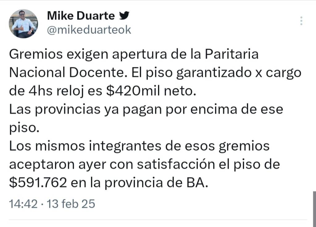 El salario docente en las provincias ya superó el piso mínimo establecido por la Nación en agosto de 2024 de $420mil pesos de bolsillo, y en vista de que el factor inflacionario se desacelera, cuando se establecen porcentajes de incremento acorde los números de inflación que arroja el INDEC, los gobiernos no proyectan grandes porcentajes de incremento salarial.