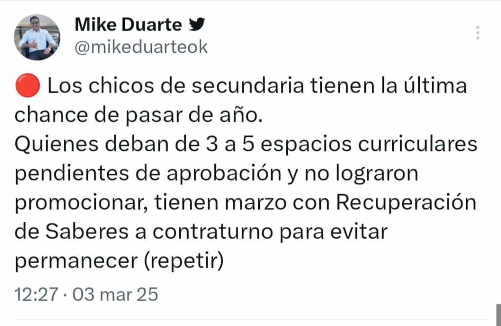 Acorde al Calendario Escolar 2025 y según los detalles del Memorándum 21/25 de la Subsecretaría de Educación del 5 de marzo al 1 de abril se desarrollará una instancia de Recuperación de Saberes destinada a estudiantes de nivel secundario que tengan entre tres y cinco espacios curriculares pendientes de aprobación y no hayan logrado la promoción al 28 de febrero.
