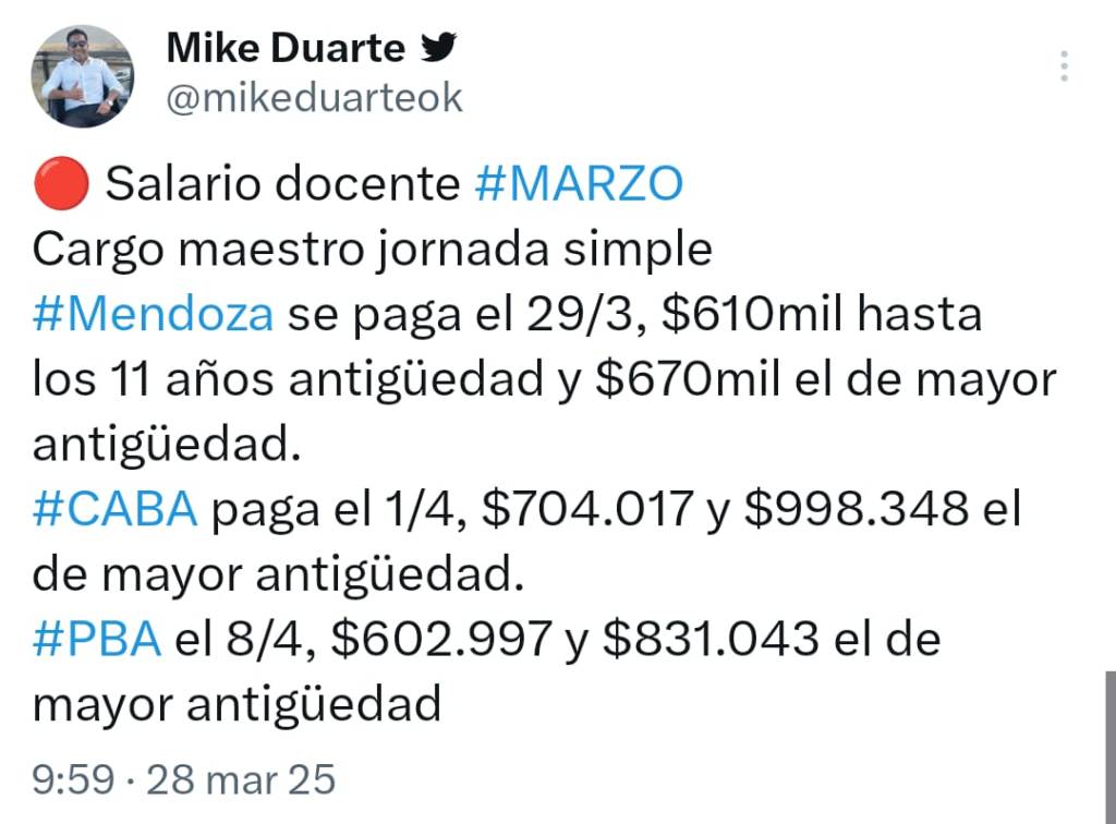 En este sentido para el sector docente, se trata de pago del mes marzo para titulares y suplentes equiparados, en tanto que los reemplazos en general cobran mes de febrero.