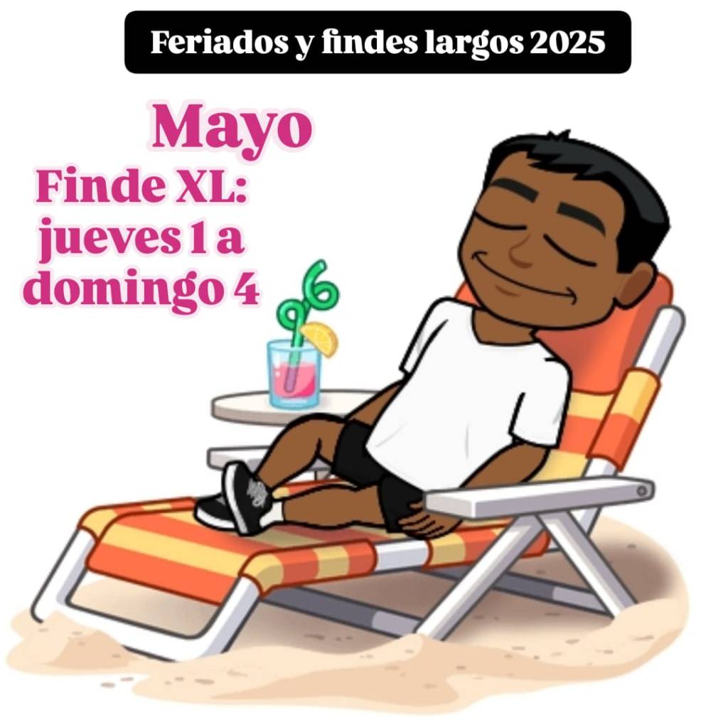 - Jueves 1 de mayo al domingo 4 de mayo finde XL de 4 días ( jueves 1 mayo feriado por el día del trabajador y viernes 2 mayo no laborable con fines turísticos)