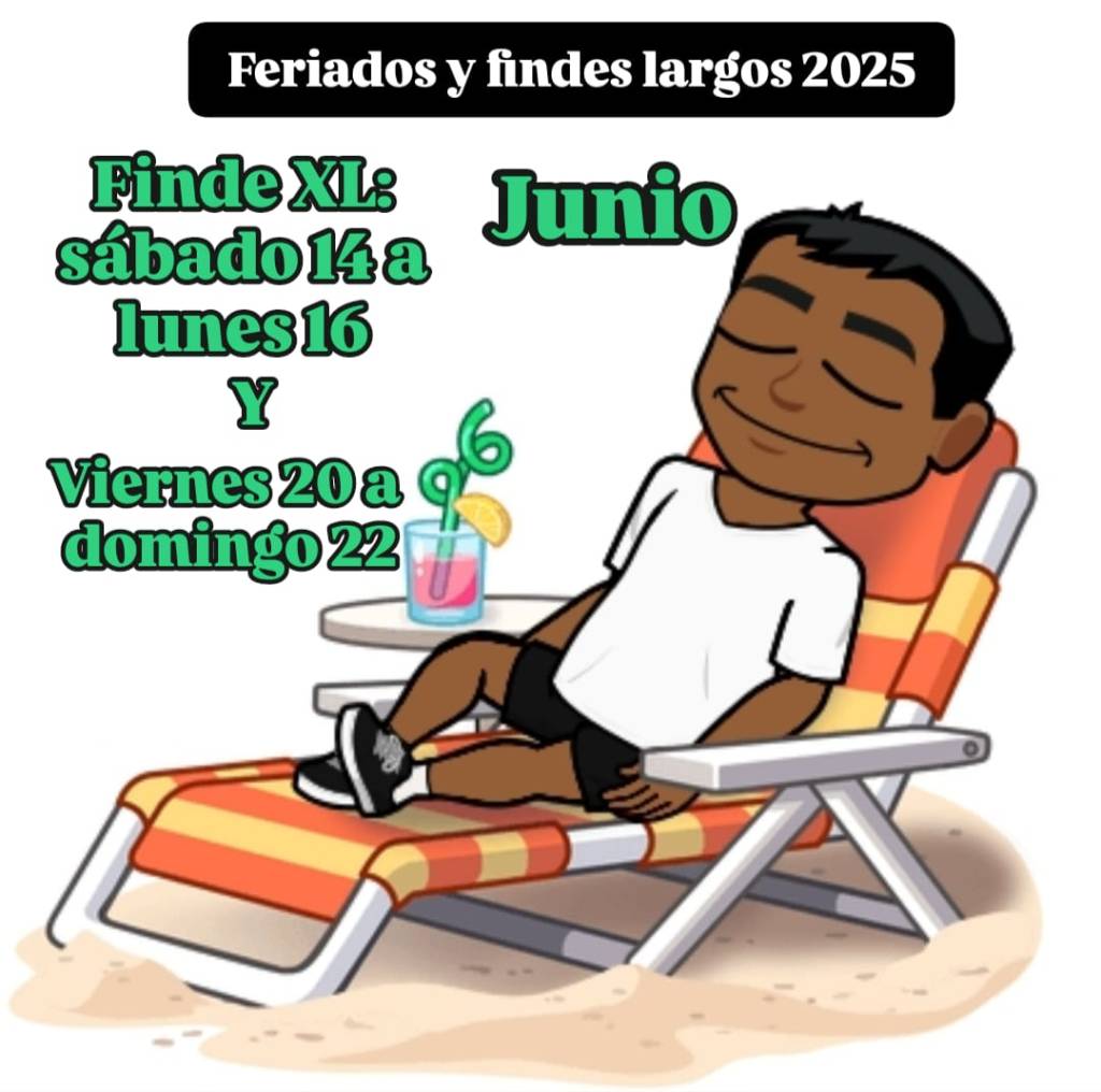 - Sábado 14 al lunes 16 de junio finde XL de 3 días: por el feriado que se traslada del 17 al 16 de junio por Güemes.