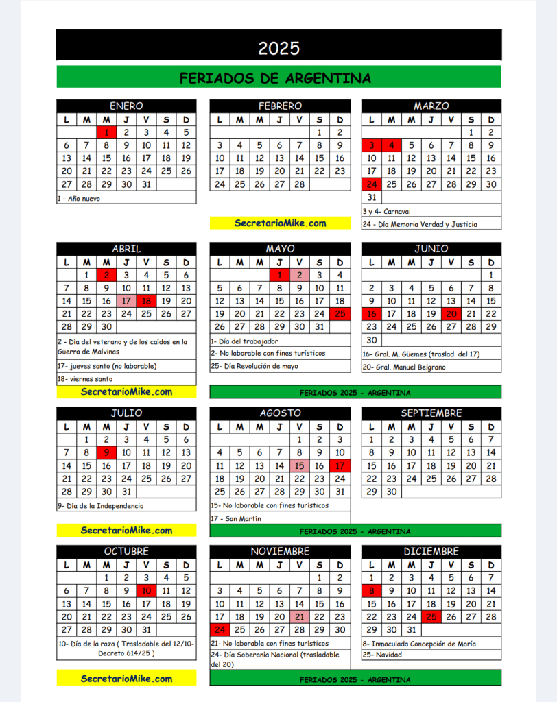 - Finde XL 3 días: 10 al 12 de octubre (viernes 10 octubre feriado trasladable por el Día del Respeto a la Diversidad Cultural)