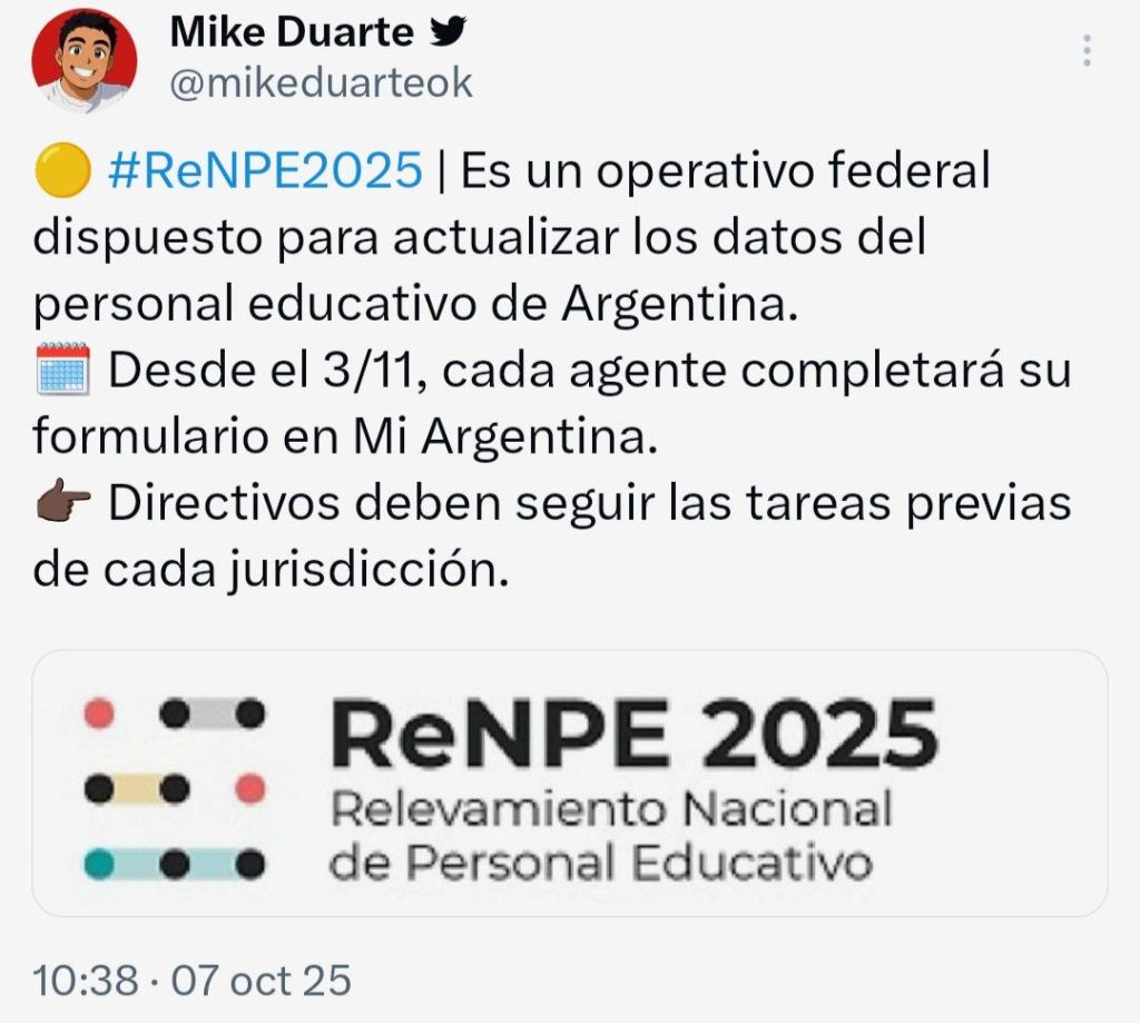 La Subsecretaría de Educación de Mendoza, mediante el Memo N° 250/2025 (ME-2025-07975829-GDEMZA-SUBEDUCACION#DGE), comunicó oficialmente el inicio de la Etapa I del ReNPE.