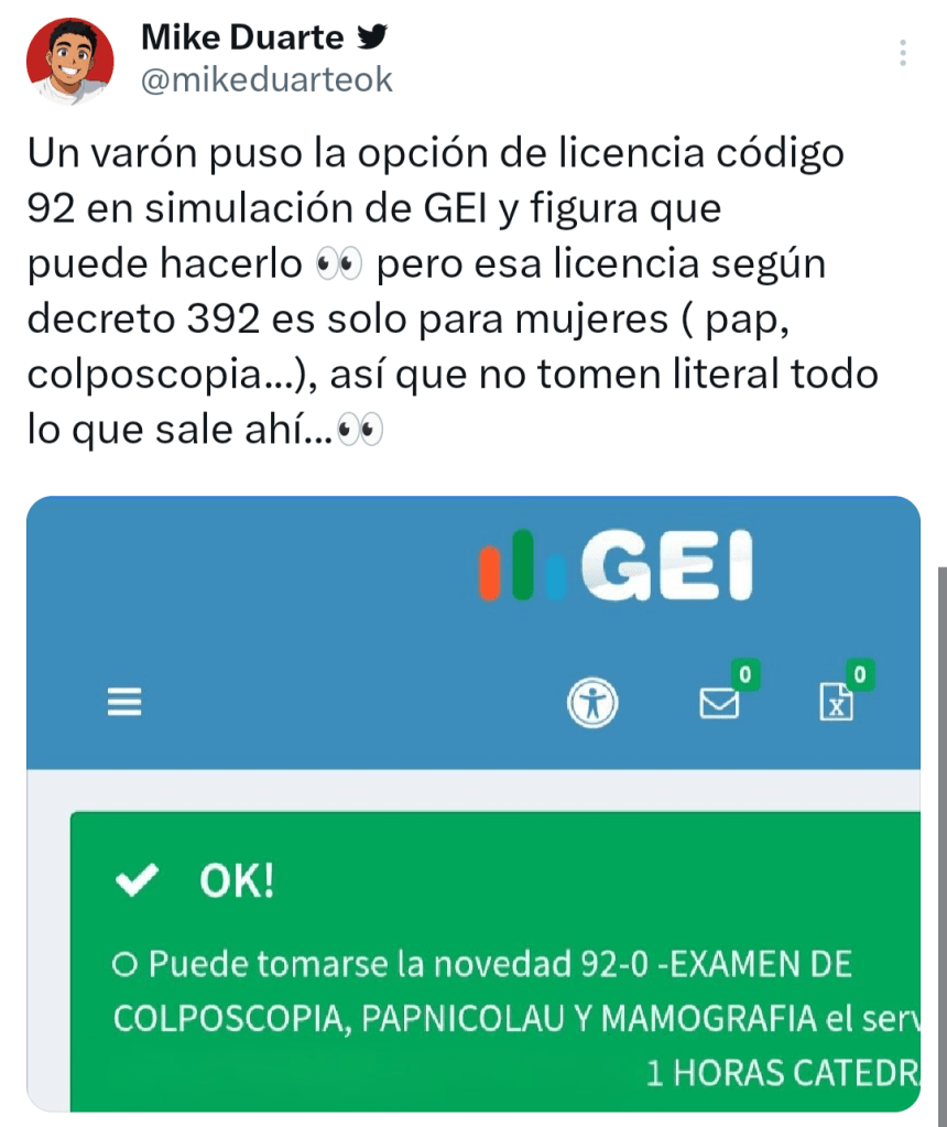 Por ejemplo, al probar la función elegí el “Día Femenino” (Decreto 392/13), y el GEI lo habilitó, aunque en la normativa esa licencia está prevista exclusivamente para mujeres mayores de 18 años que se desempeñan en el Estado provincial.