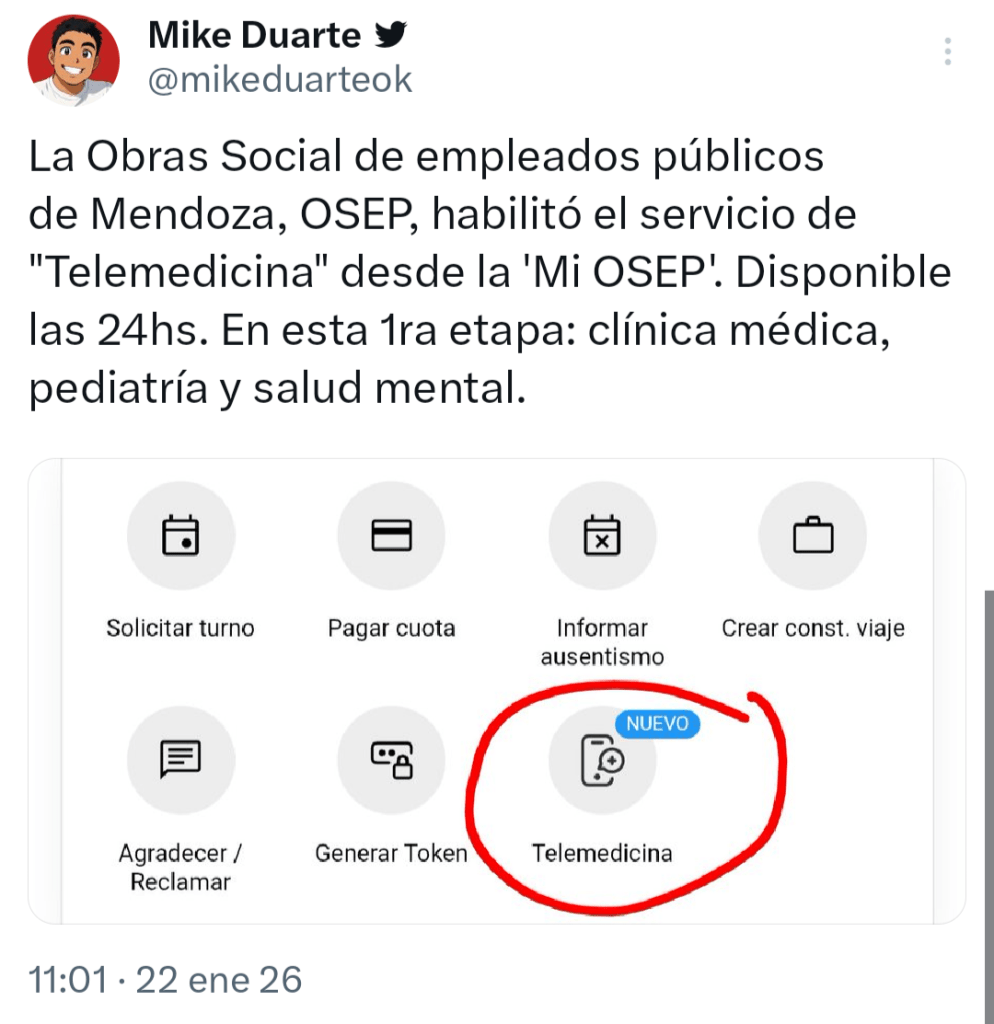La Obra Social de Empleados Públicos de Mendoza (OSEP) puso en funcionamiento el servicio de telemedicina disponible directamente desde la aplicación Mi OSEP.