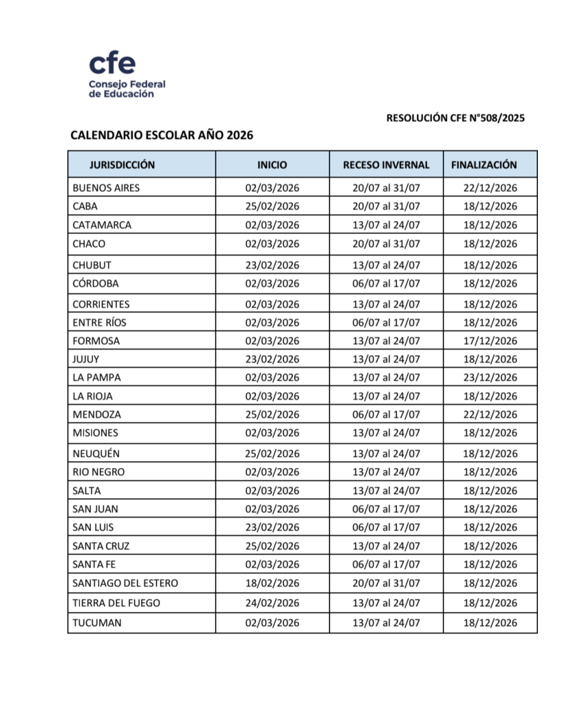 - 🚌 La mayoría de las provincias inicia el ciclo lectivo el 2 de marzo, incluido Buenos Aires.
