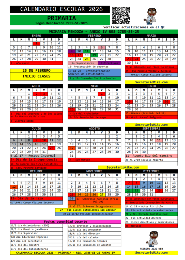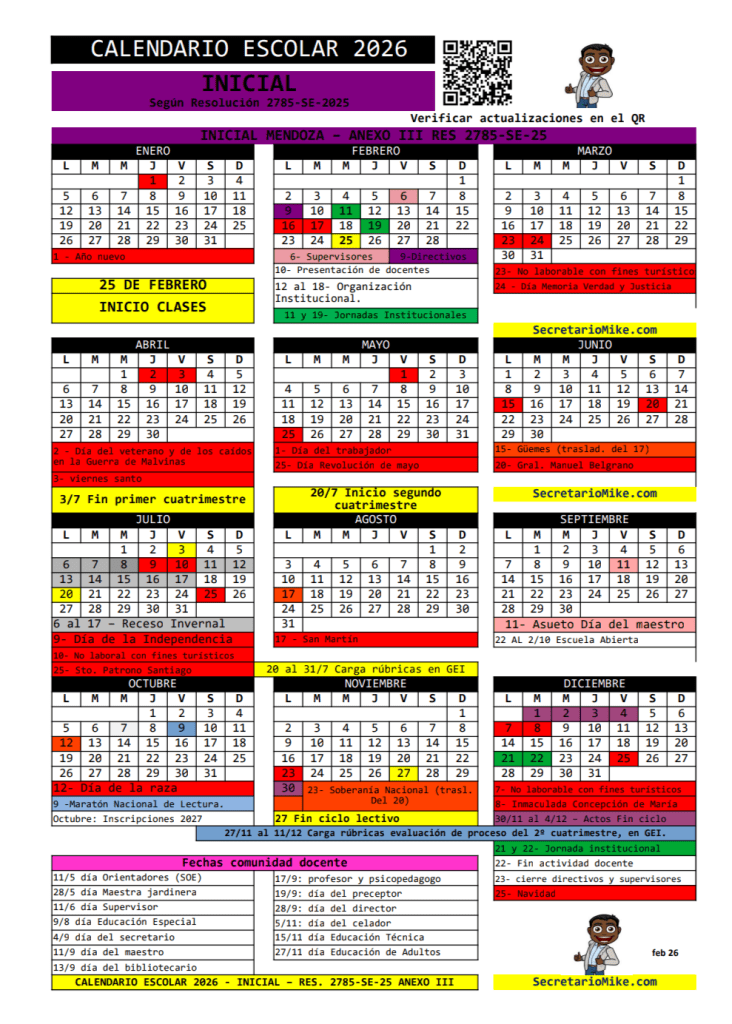 Como todos los años, Secretario Mike comparte sus versiones del calendario escolar 2026, en PDF, listas para descargar e imprimir, pensadas para el uso diario en escuelas, cuadernos y planificaciones.