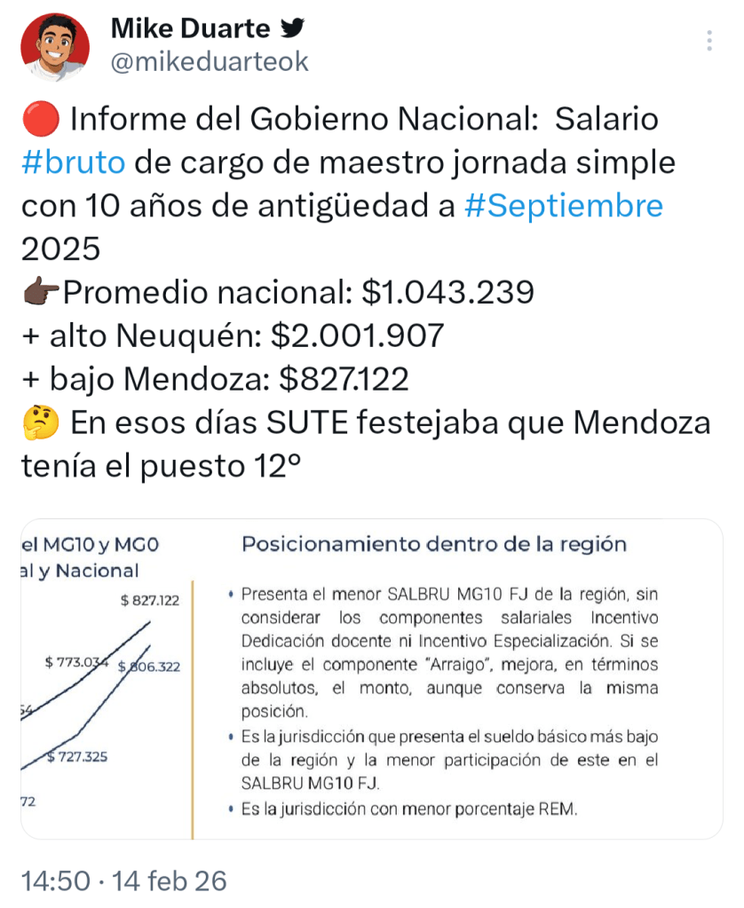 “¿Por qué Mendoza aparece última en salario docente con antigüedad?” (16 de febrero de 2026).