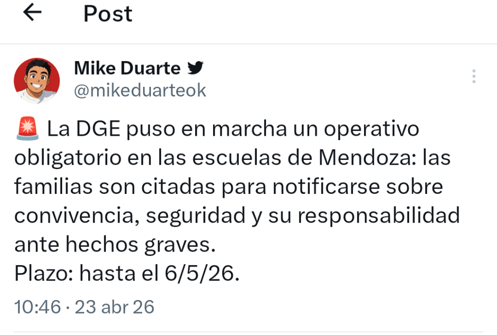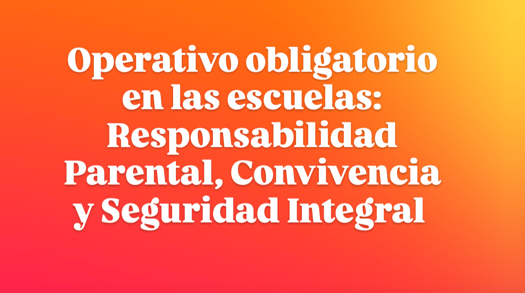 El Gobierno Escolar puso en marcha un operativo territorial obligatorio que deberá realizarse en todas las instituciones educativas de la provincia referida a la responsabilidad parental, la convivencia escolar y la seguridad integral.