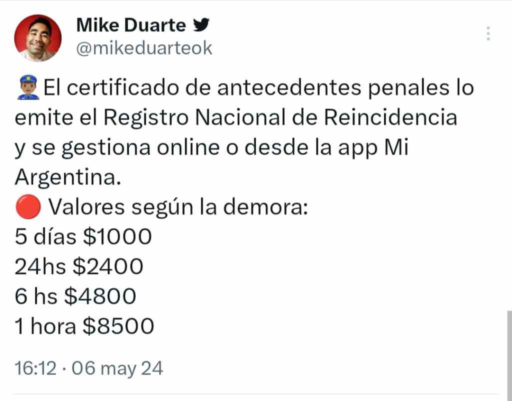 Por Resolución 4/2024 del Ministerio de Justicia, a partir del 22 de enero de 2024 se actualizaron los valores del trámite de solicitud del certificado de antecedentes penales: