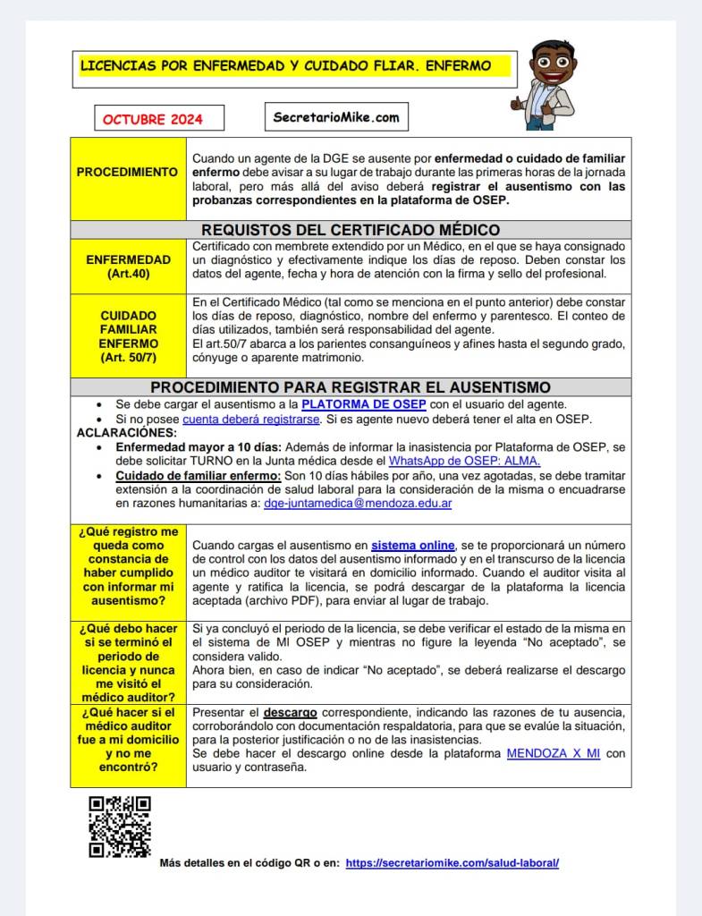 - DESCARGOS ANTE SALUD LABORAL: Desde octubre de 2024 el trámite de descargo por ausentismo se realiza por la plataforma de Mendoza x Mí, ver tutorial.